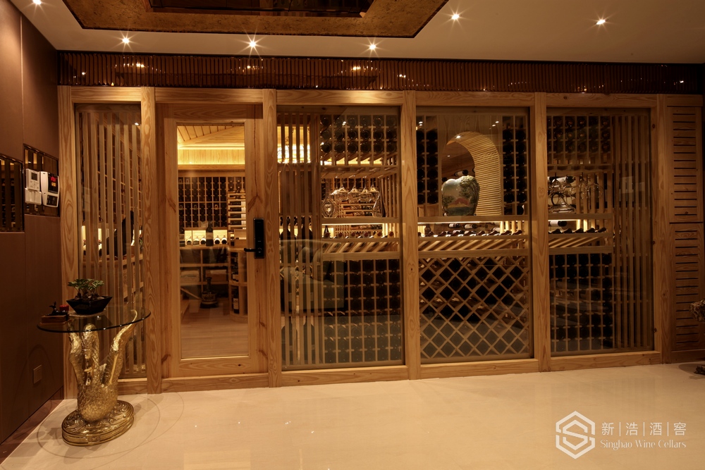 从前,酒窖在很多人看来就是采用冰冷的金属酒柜,外部做些装饰,使其看似室内空间的一部分。嘈杂的压缩机、糟糕的LED灯束装置以及带着冷凝露的玻璃柜门曾经构成葡萄酒储藏必不可少的元素。如今,客户因为选择了SWC,那些令人懊恼的问题将迎刃而解。正如本图所示,酒窖构成室内空间不可分割的一部分,通过精心的设计,搭配天然选材,与整个空间融为一体,酒窖内外所有的饰面都覆盖相同的实木,为了确保整这种感觉能延伸到整个空间,我们选择使用大幅的玻璃正立面。透过玻璃,访客能立即看到层层叠叠陈列于酒架上的美酒。